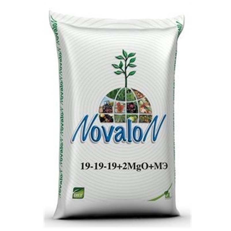 Новалон 19-19-19+2MgO+1,5 S+МЕ – дане добриво є повністю розчинним у воді. Містить у своєму складі мікроелементи у формі хелатів, які використовуються в найрізноманітніших системах поливу, а також для позакореневого підживлення найрізноманітніших культур.