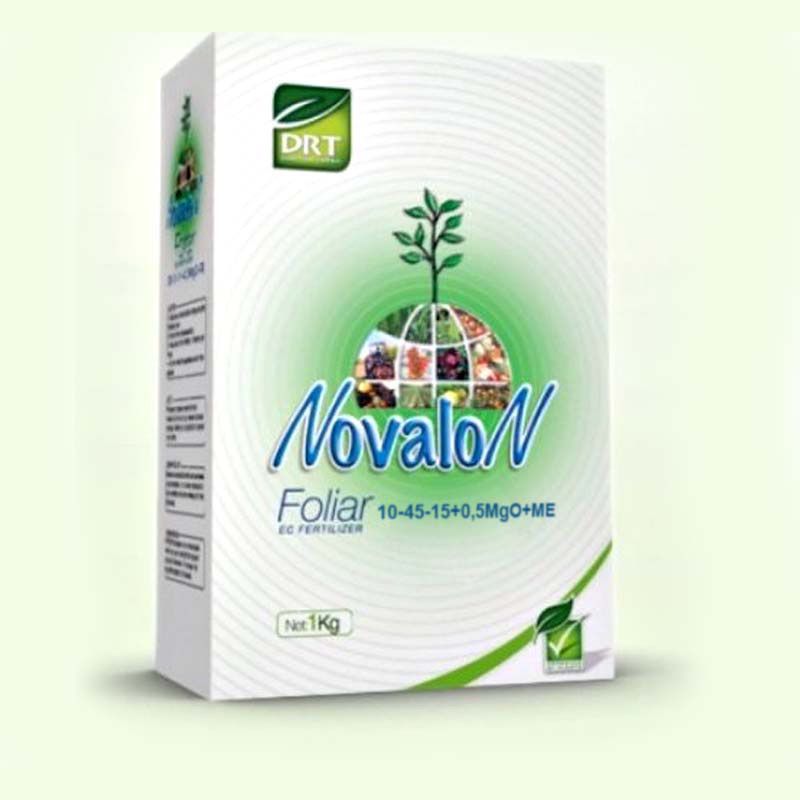 Новалон Foliar 10-45-15+0,5 MgO+МЕ - дане добриво є повністю розчинним у воді. Містить у своєму складі мікроелементи у формі хелатів. Використовується для листового підживлення всіляких культур.
