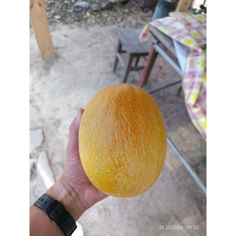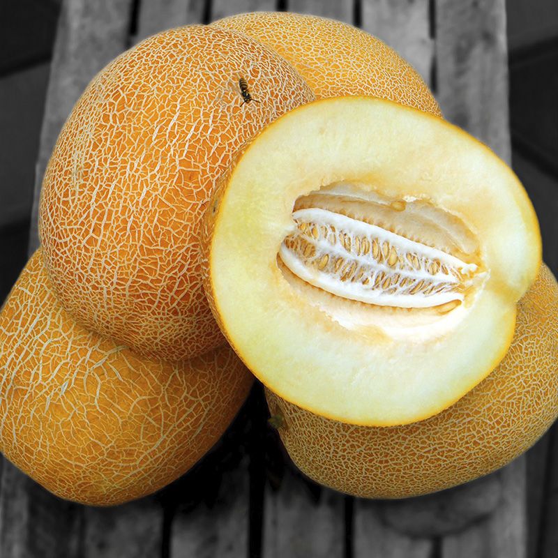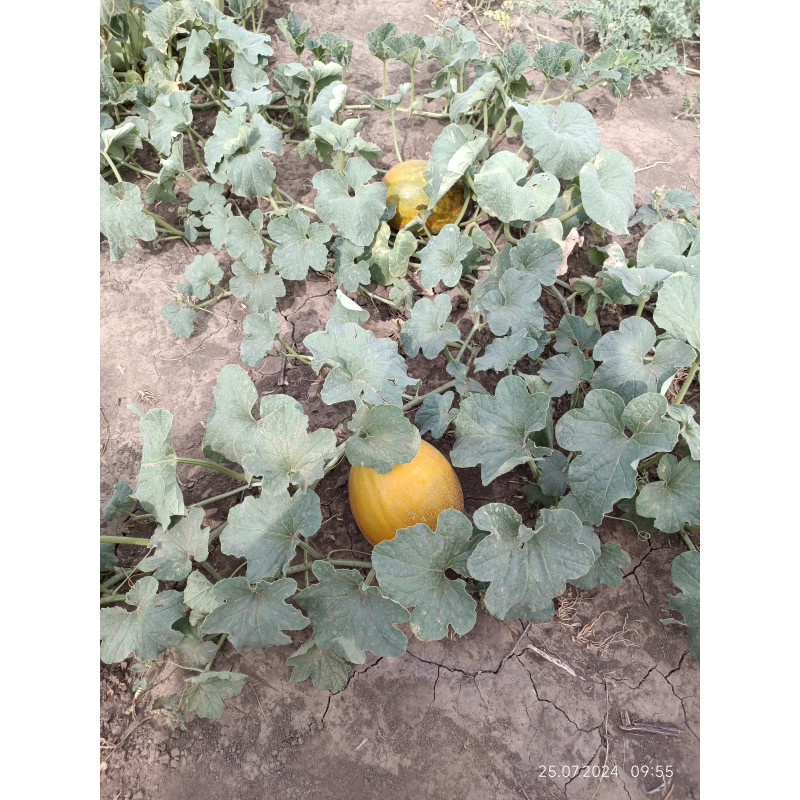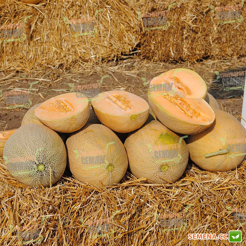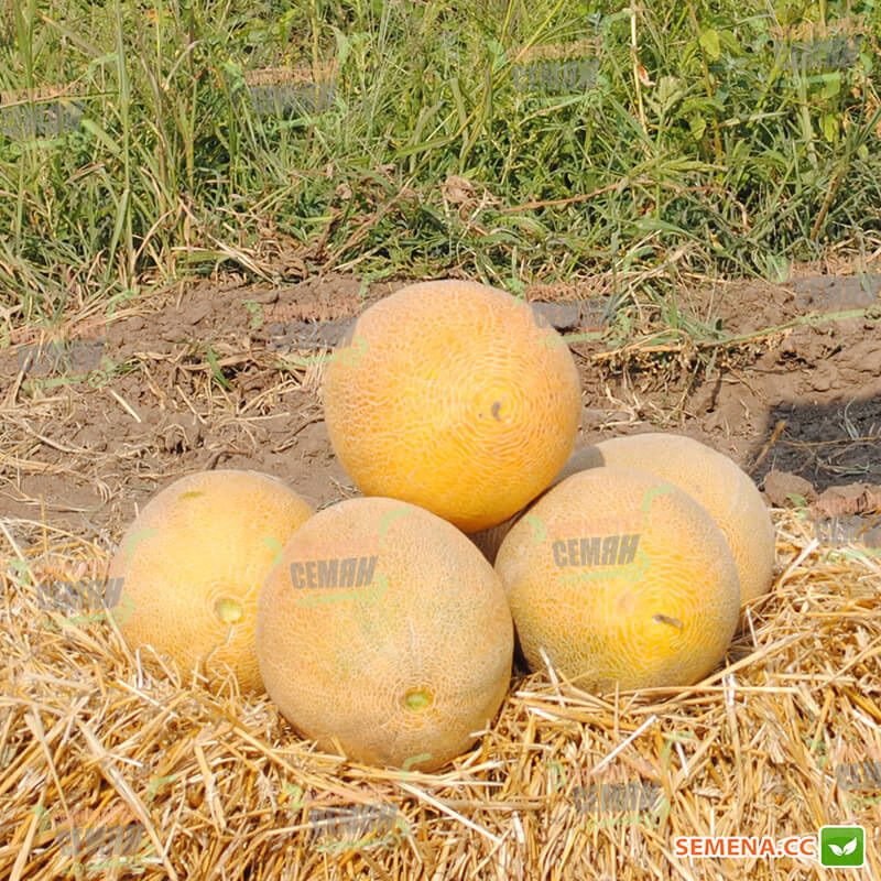Характеристика плодів – Плоди овальної форми, темно-жовтого кольору з яскраво вираженою крупною сіткою, з біло-кремовою м’якоттю і відмінними смаковими якостями. Середня маса плоду 1,5-3,0 кг. Вміст цукрів – 12-13%.
