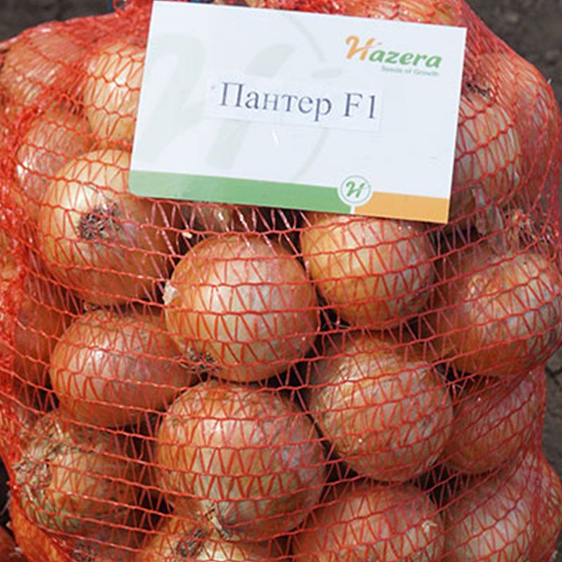 Пантер Ф1 - це середньостиглий гібрид озимої цибулі, у якої добре розвитий листовий апарат, а так само потужна коренева система. Цей гібрид стійкий до стрілкування навесні, а так само стійкий до морозу взимку. Цибулини округлі, бронзово-коричневого кольору, масою до 200 грамів, в діаметрі до 8 сантиметрів.