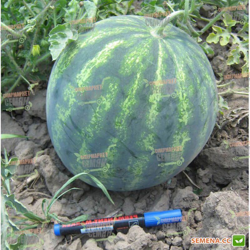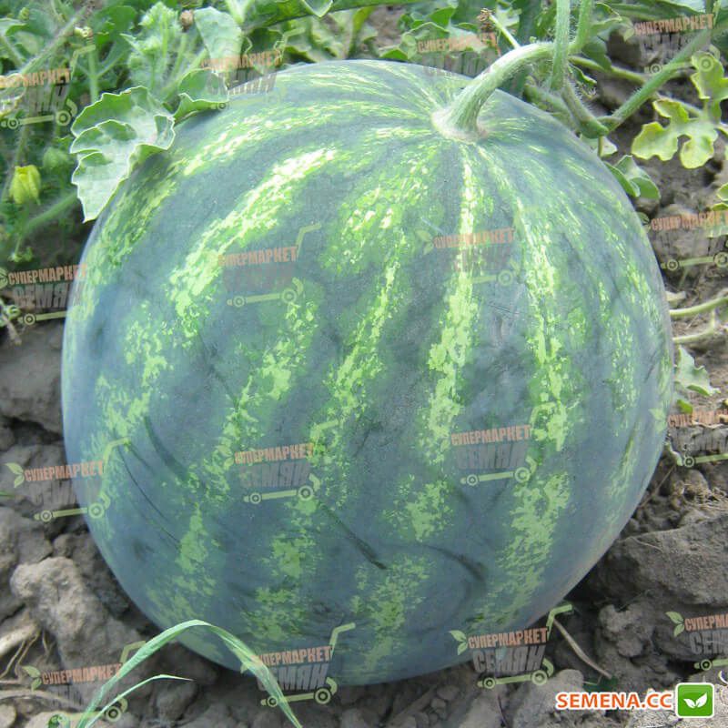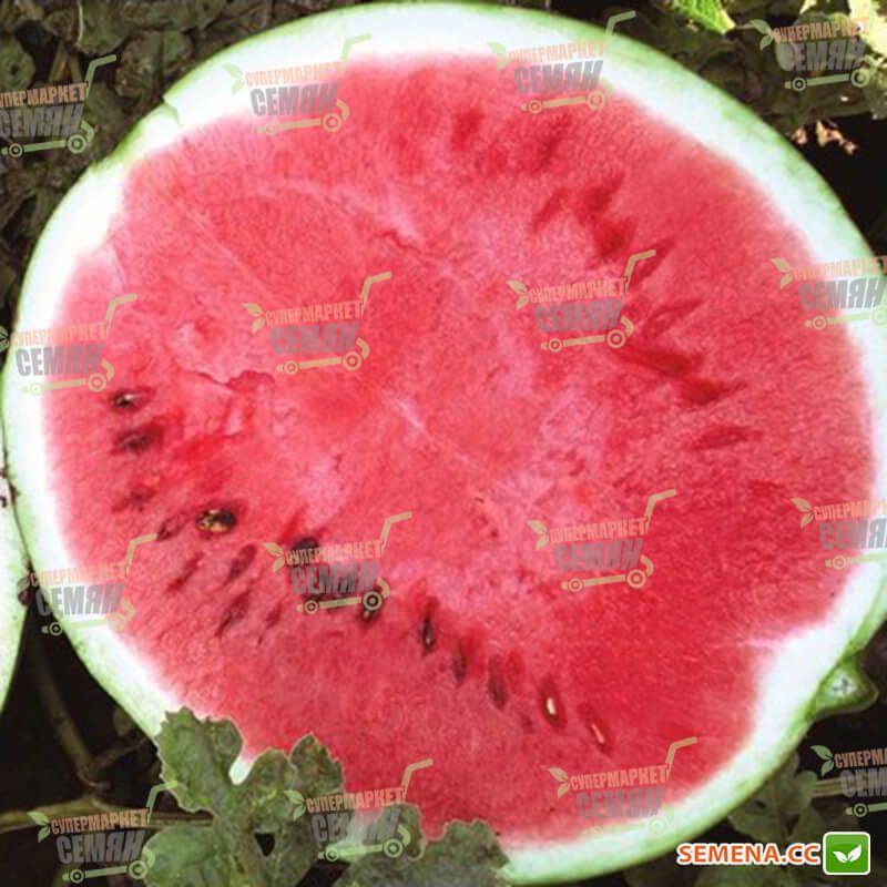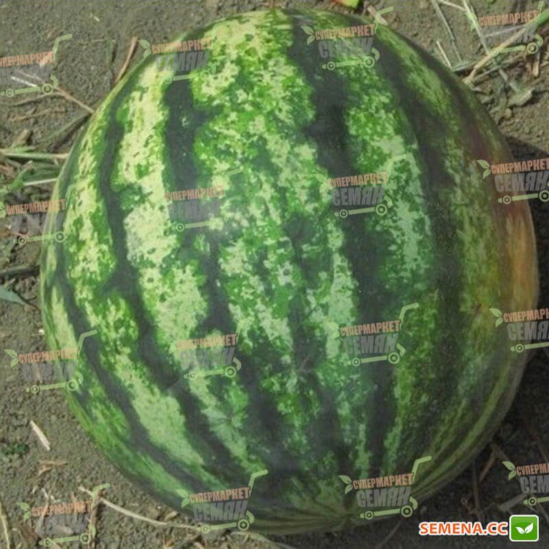 Шкірка з темно-зеленими смугами, а м'якоть насиченого червоного кольору.