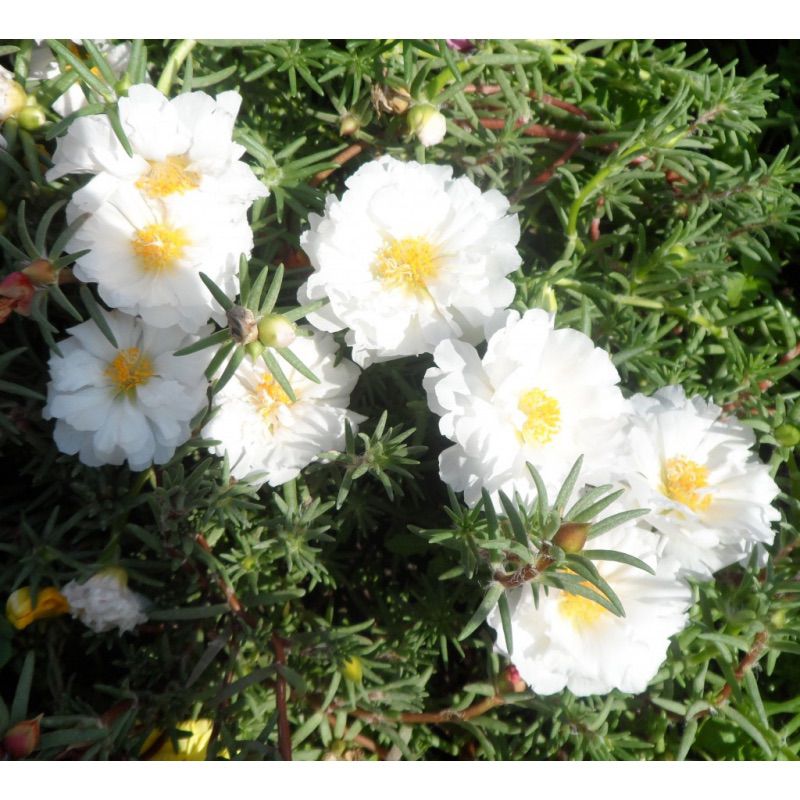 Портулак Хеппі Траілс білий - багаторічна або однорічна трав'яниста рослина висотою 30 см, розмір квітки до 5 см.