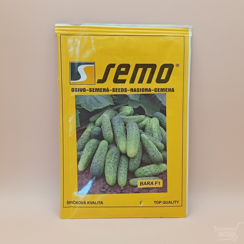 Бара F1 - це гібрид бджолозапильного огірка від фірми Semo. Відзначившись високою якістю товару, чудовим смаком. Відмінно плодоносить під час усього періоду росту. Рослина велика. Плоди огірка однорідні, мають великі горбки, зелене забарвлення, хорошу щільність.