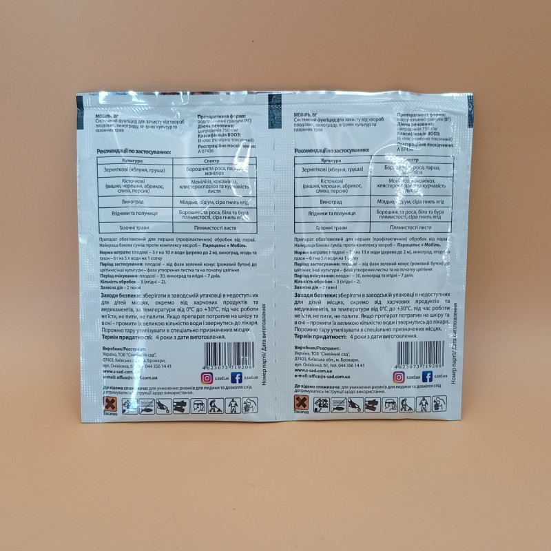 Яблуня, груша | Парша, борошниста роса, плодова гниль | 3 г на 10 л води на 3-10 дерев |