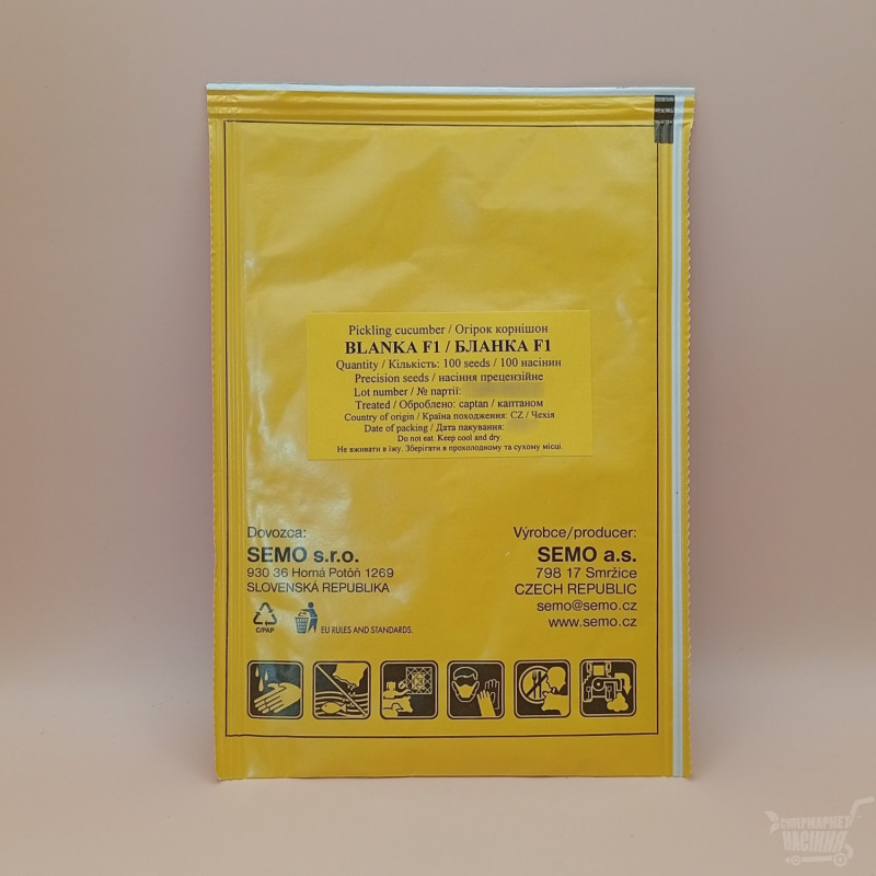 Бланка F1 - ранній потужний гібрид огірка. Період збору 45 днів від сходів. Має високі регенеруючі властивості. Плід білошипий, має циліндричну форму, зелений колір, відмінний смак. Відрізняється стійкістю до умов вирощування, різким змінам погодних умов, нестачі вологи, ряду хвороб. Призначений для свіжого споживання / консервації / засолювання.