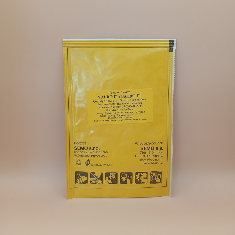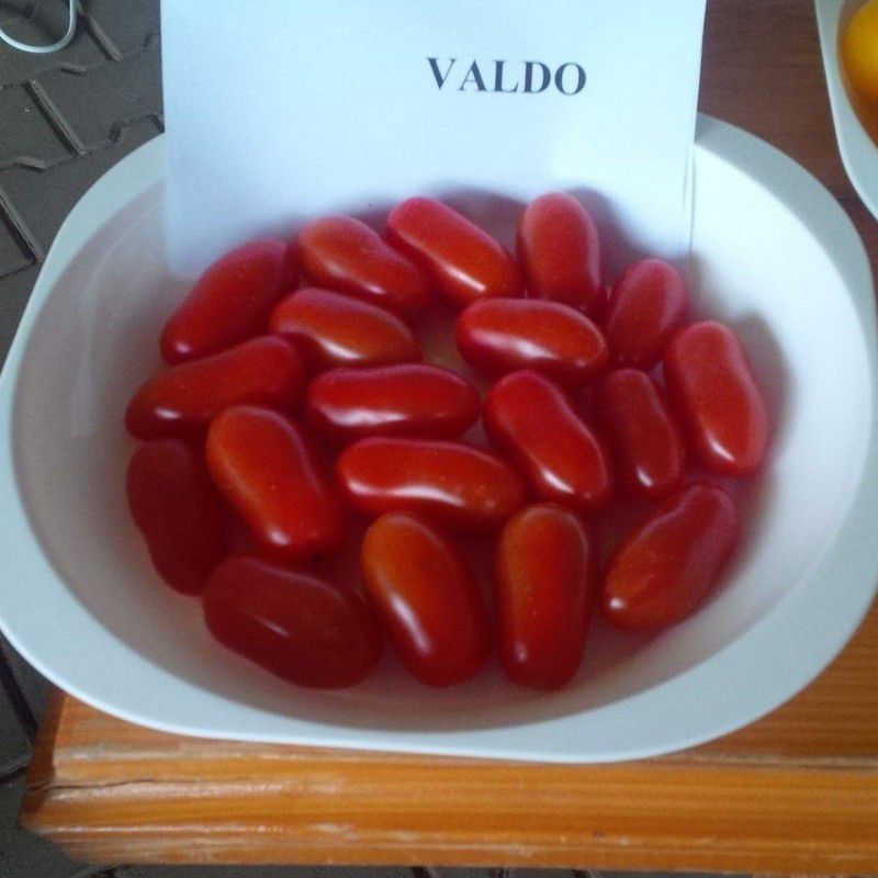 Томат Валдо F1 - є раннім індетермінантним гібридом тип Черрі. Допускається вирощувати як на відкритому так і на закритому грунті. Плоди мають сливовидну форму, червоного кольору, гладкі, середня вага 20-25 грам, мають приємний солодкий смак. Плоди призначені для споживання у свіжому вигляді і для переробки. Відрізняється стабільним і високим урожаєм. Всі ці фактори сприятливо впливають на якість товарної продукції.