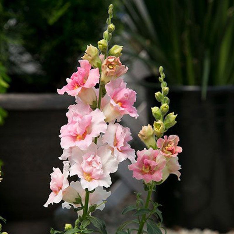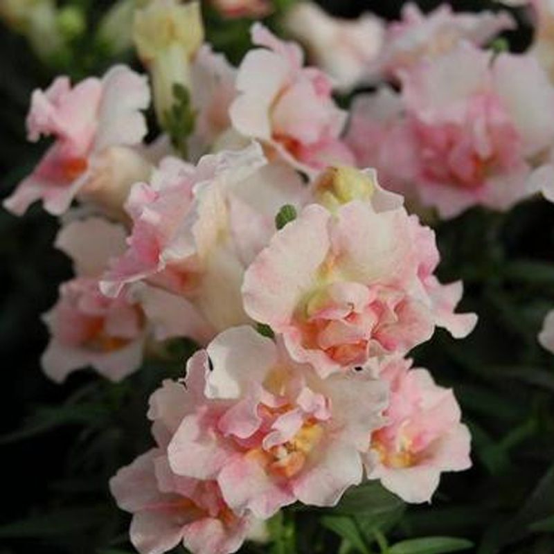 Левиний зів (антірінум) махровий Твіні F1 яблуневий цвіт (Antirrhinum majus Twinny F1) – низькоросла серія з махровими і напівмахровими квітами (в залежності від умов вирощування).