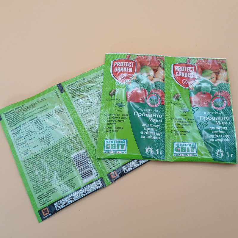 | баклажани | колорадський жук, попелиці | 1 г/10 л воды на 2 сотки | 20 днів |